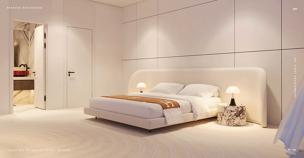 Experience the privilege of exclusive beachfront living at Villa del Brunello, a boutique branded residence by Mr. Eight Development on the prestigious Dubai Islands. This G+12 tower is a masterpiece of timeless elegance, offering a curated collection of 2 to 4-bedroom apartments and duplexes, where every detail reflects prestige and sophistication. The residence redefines everyday living with interiors featuring natural Italian stones, designer pieces from Tom Dixon, and iconic furniture from B&B Italia and Cassina. With a stunning infinity pool, a state-of-the-art Technogym fitness center, and bespoke à la carte services including a Rolls-Royce chauffeur, Villa del Brunello is more than a home; it is a statement of refinement and the art of truly living.